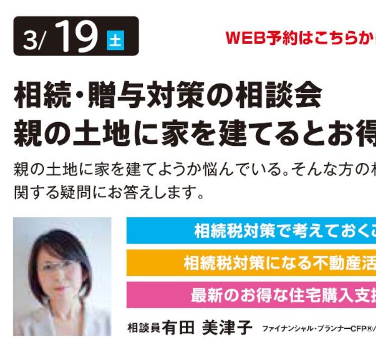 環七・加平ハウジングギャラリーで相続贈与対策の無料相談会を行います 13時からの午後の回はまだ空きがありますのでお問い合わせください。 相続・贈与対策の相談会 ...