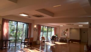 法律上入居者3対スタッフ1が指定人員ですが、この施設では2対1と手厚い介護となっています。