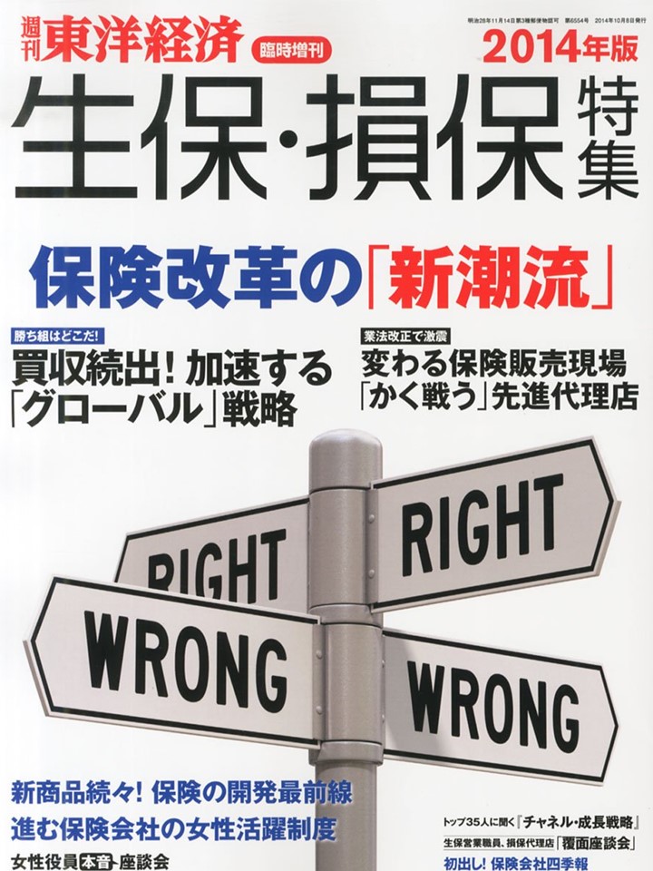週刊東洋経済臨時増刊 2014年版 生保・損保特集 に 「独立系FPが語る保険ニーズ最前線」 というコラムを書かせていただきました。