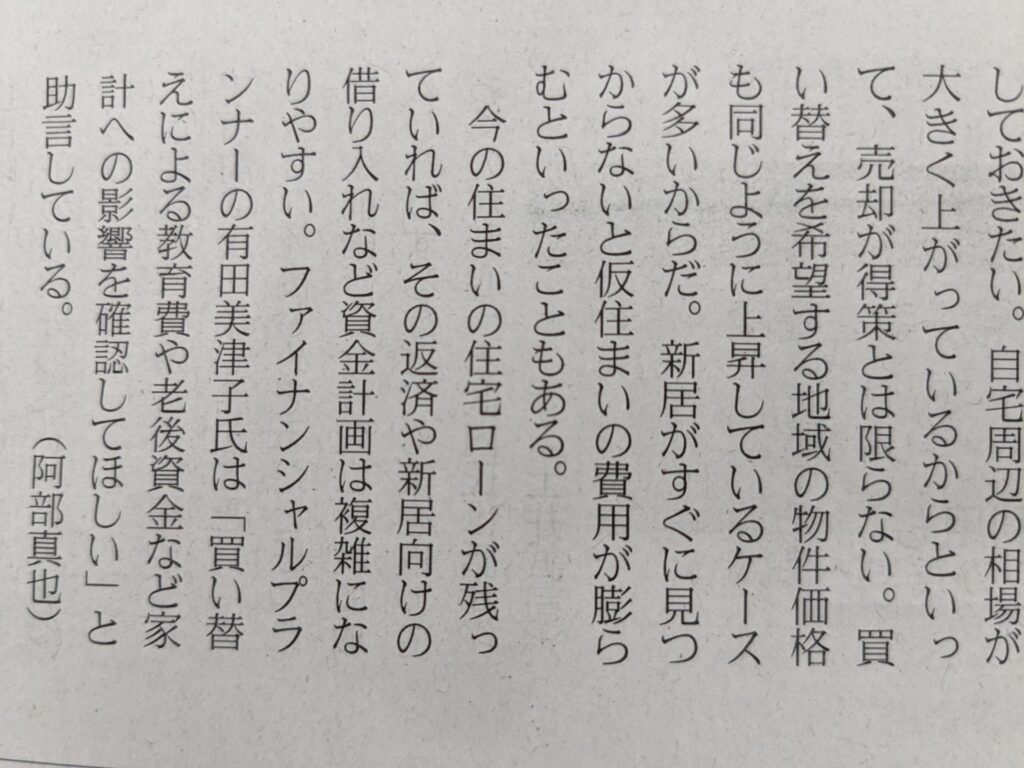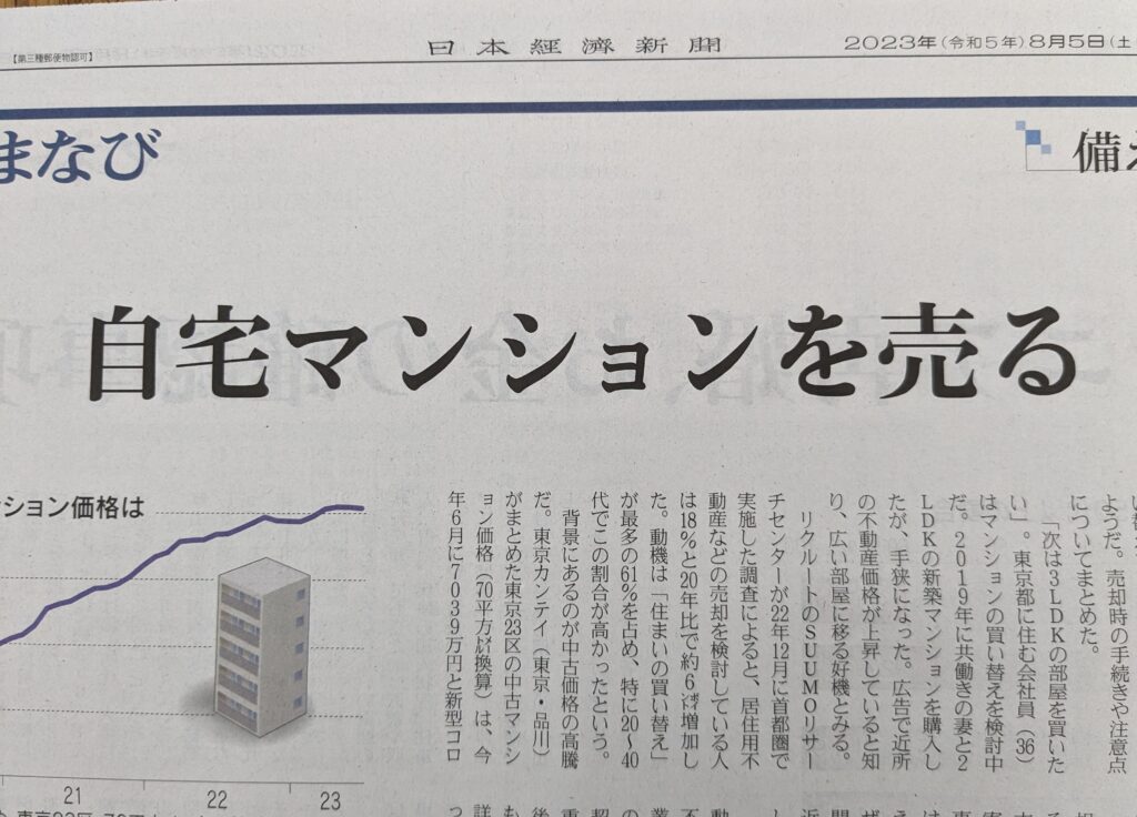 8月5日(土)日経新聞朝刊 P21 マネーのまなび「自宅マンションを売る」の記事にコメントが掲載されました。