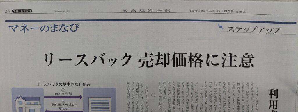 3月7日(土)日経朝刊のマネーのまなびに、コメントが掲載されました。